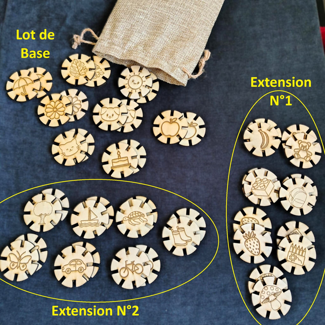 Cet article contient le jeu de base (16jetons) + 2 extensions de jeu (28 jetons).