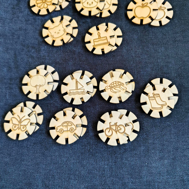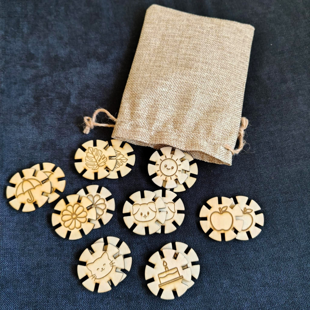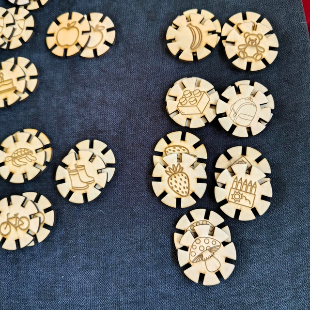 Disposer les jetons face cachée, puis chaque joueur en retourne deux en essayant de trouver des paires identiques. Si les jetons retournés sont différents, ils sont replacés face cachée.